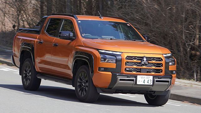 エンジンは、新型トライトンとしてはフラッグシップとなる、2.4Lツインターボディーゼルエンジンを採用。パワースペックとしては150kW/470Nmとなり、その極太トルクに感激しつつも、その数値以上に好印象だったのは、なだらかに、そして、滑らかに加速していくフィーリングのほう。極低回転域から不足ないトルクを発生させつつ、どの回転域からもさっと加速し、特に高速道路では、そのままに高回転へと導いてくれる。イマドキのSUVのように8速あったほうがいいのにな、と思わせることもなく、気持ち良さを堪能できる。