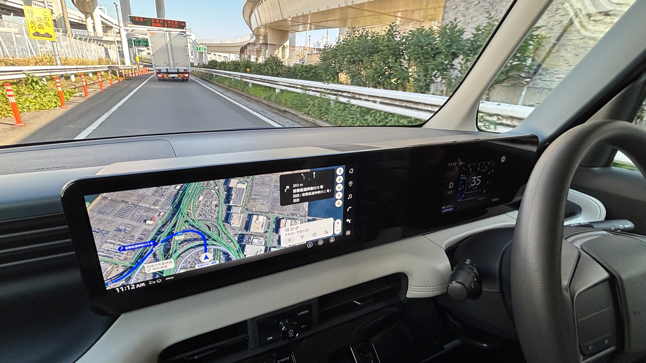 (上)ボディカラーは、ハイウェイスターシリーズに6通りの2トーンと7色のモノトーン、スタンダードシリーズに7色のモノトーンで全17通り。(下)海沿いの大黒PA周辺はカーブが続くのだが、ロールスピードを抑えたサスペンションはゆっくりとロールするため、乗員に安心感を与えてくれた。
